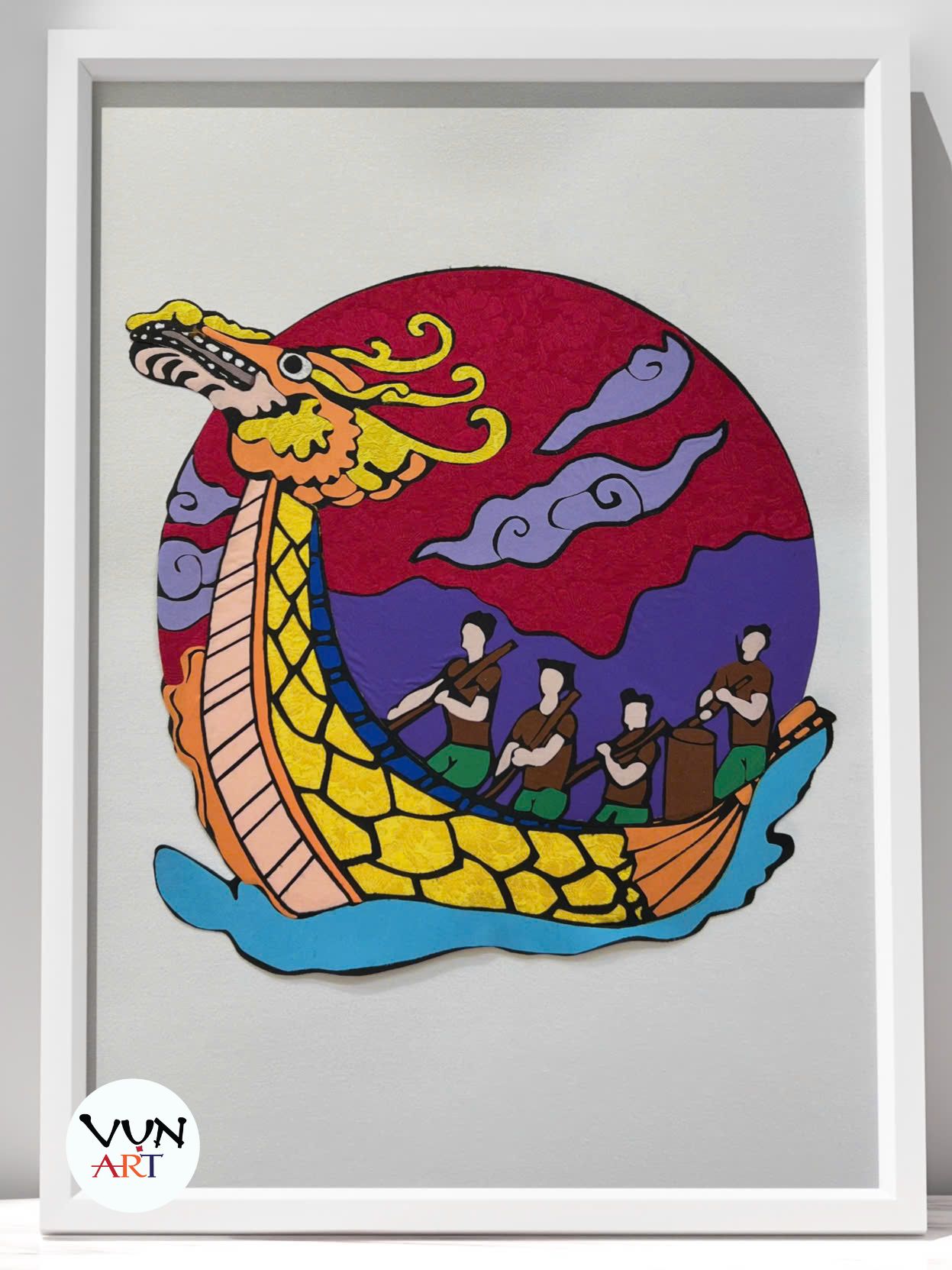 Tranh ghép lụa Đua thuyền rồng