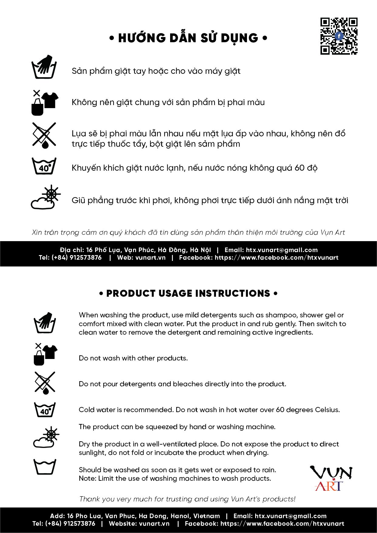 – Hoạ tiết trên áo: 100% lụa Vạn Phúc được dán, ép nhiệt, không bong tróc khi giặt.